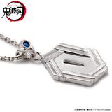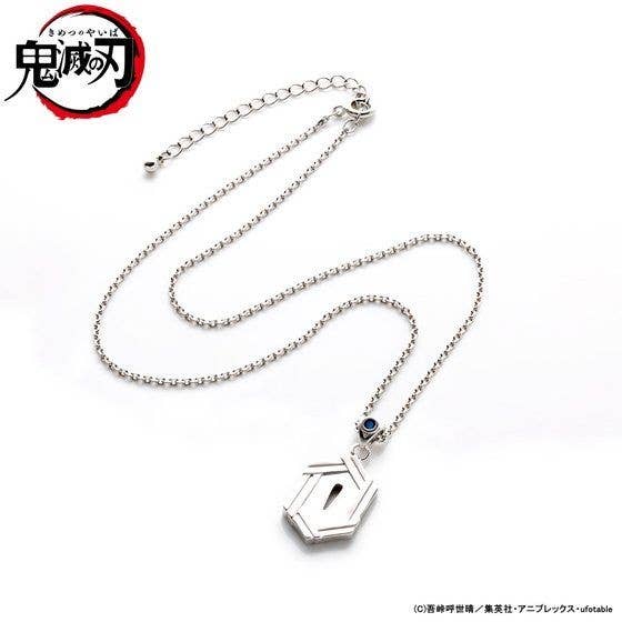 This necklace features the tsuba of the sword wielded by Giyu Tomioka in "Demon Slayer: Kimetsu no Yaiba." The pendant is made with .925 silver and a Swarovski crystal; the chain is plated brass. Order this unusual accessory today!