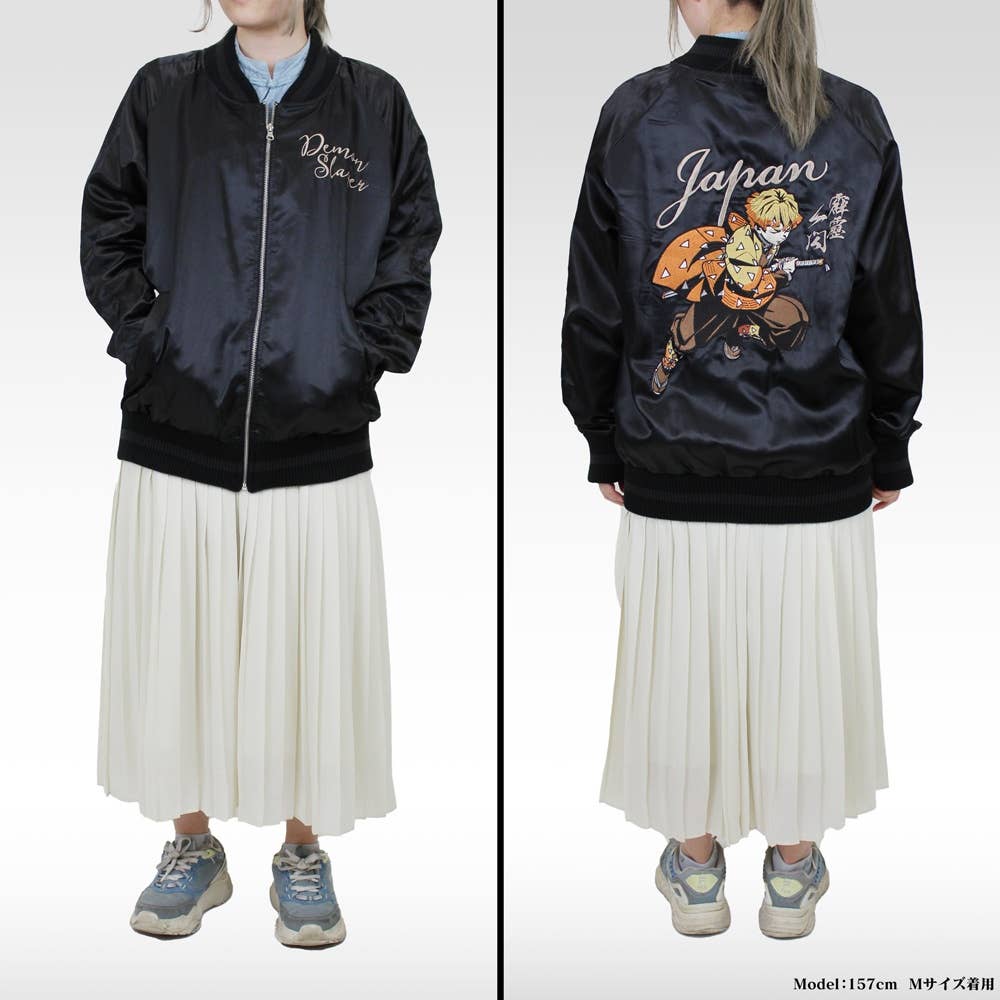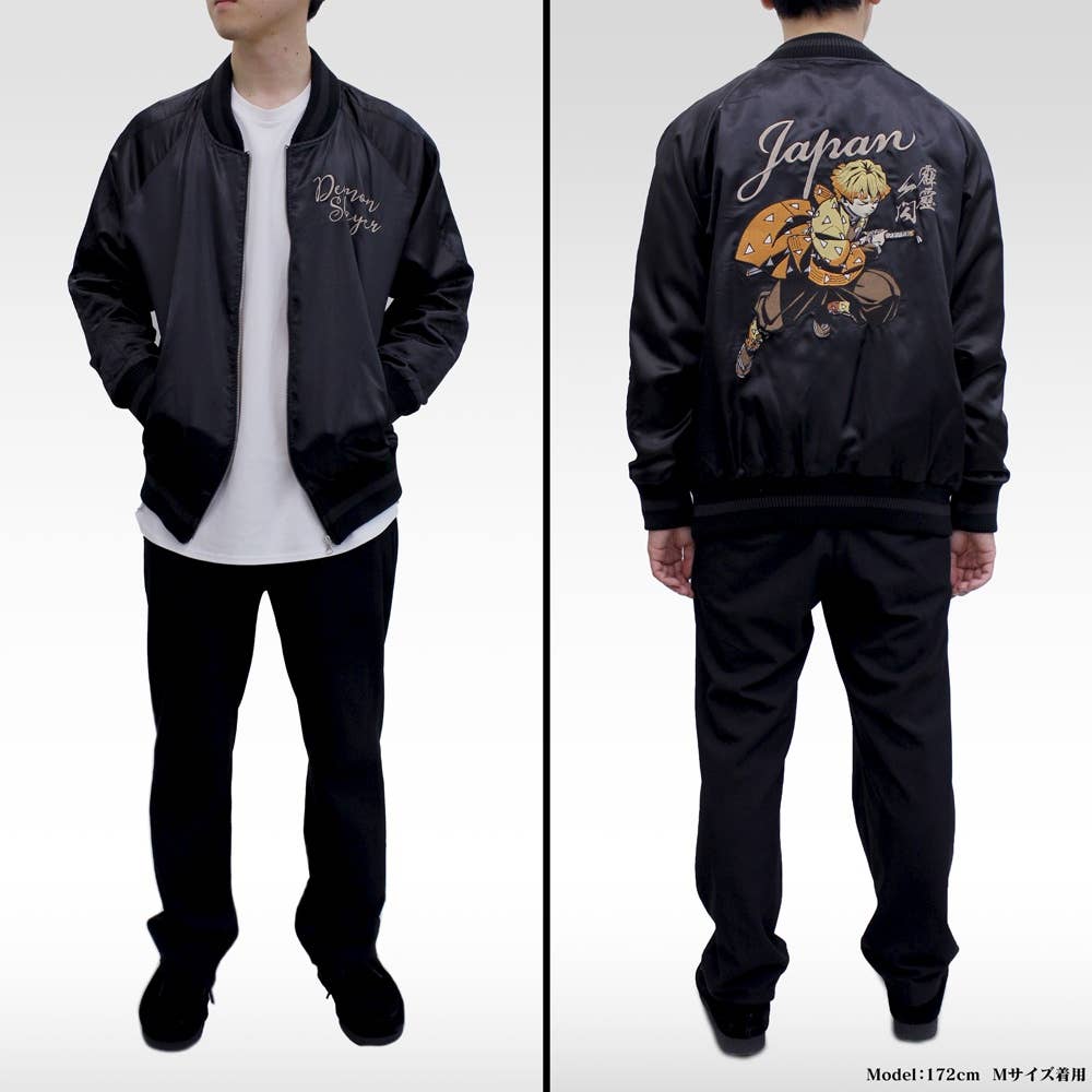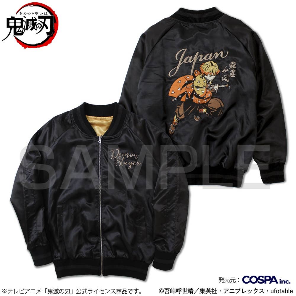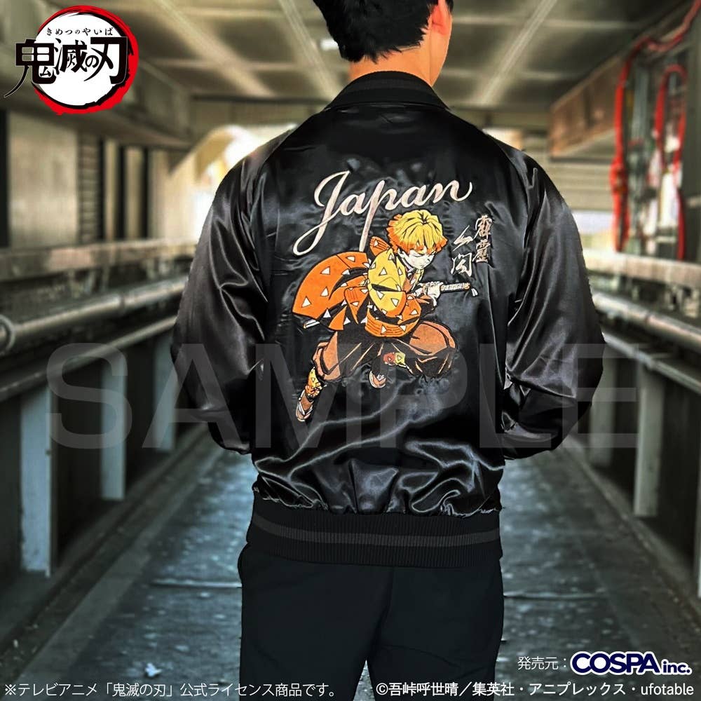 Cospa brings us an amazing sukajan (souvenir jacket) featuring Zenitsu Agasuma from "Demon Slayer: Kimetsu no Yaiba"! He's featured on the back of the jacket in full-color embroidery for a vintage look; the jacket's lining is in his character color, which contrasts beautifully with the jacket's solid black color. This lightweight jacket has no padding and is comfortable to wear just about any time of the year -- and think how amazing you'll look wearing it! Place your order today!