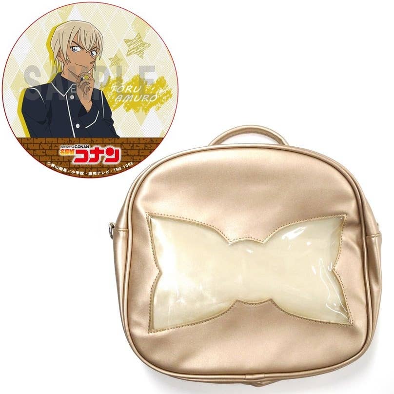 From "Detective Conan," this cute series of bags features a bow tie shaped window on the front where you can display your can badges or other goods, and comes in 6 color variations! It has a handle on the top and comes with an adjustable strap that can be attached in several different ways on the back, allowing you to use the bag as a purse or even a backpack! A can badge of Amuro is also included.