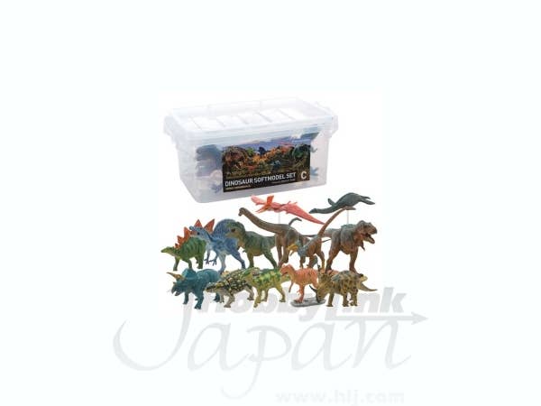 We succeeded in producing dinosaur figures that are high quality but low in price. Each dinosaur has various coloring, so if you display all of the models together, you can get a feel for the dinosaur world. This series is made of a soft and resilient material.