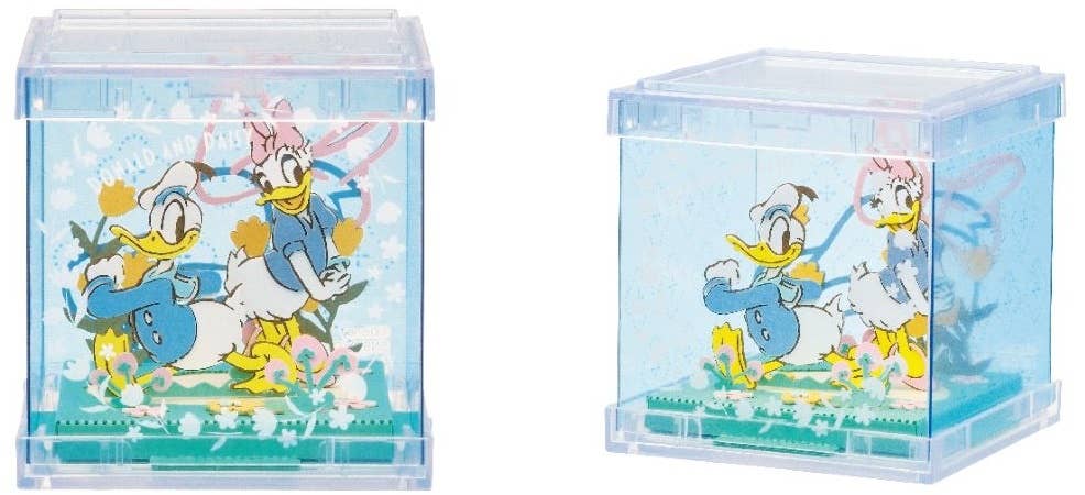 This Paper Theater kit lets you build a sweet scene of Donald and Daisy Duck, contained in a cube-shaped case for easy display! Just separate the precision laser-cut paper parts, glue them together, and assemble your scene. The cases can be stacked on top of each other, too, for a bigger dose of Disney cuteness! Order yours today!