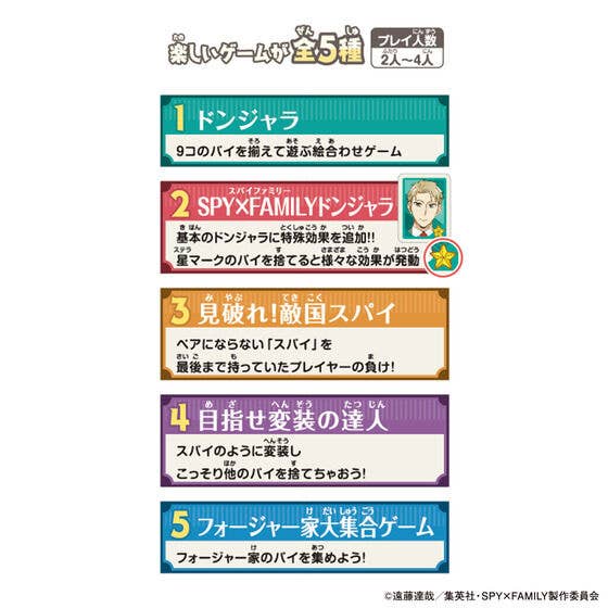 Bandai's "Donjara NEO" game from the TV anime "Spy x Family" is back! This kids' version of mah jong comes with packaging and tiles completely redesigned from the previously released version. You can play five different games with these pieces, including the standard Donjara. Order yours today!
