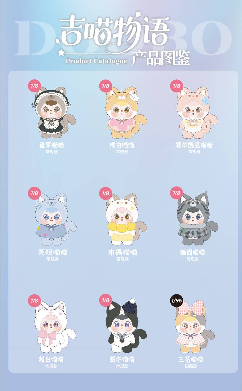 Doobo Cat Cafe Series Lucky Meow Tales Plush Blind Box 1Box 8pcs