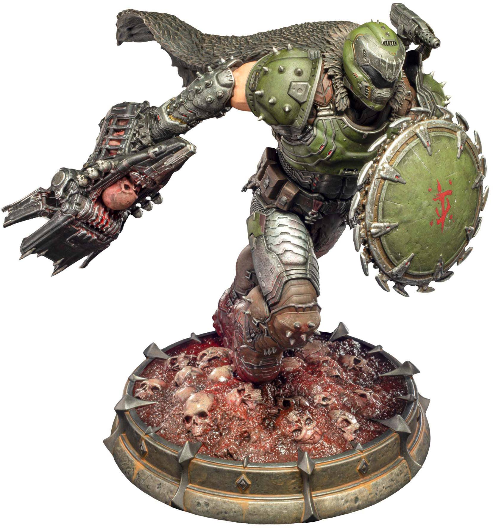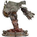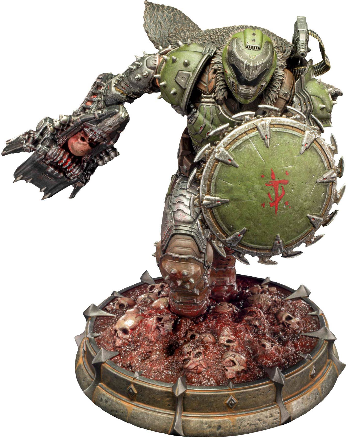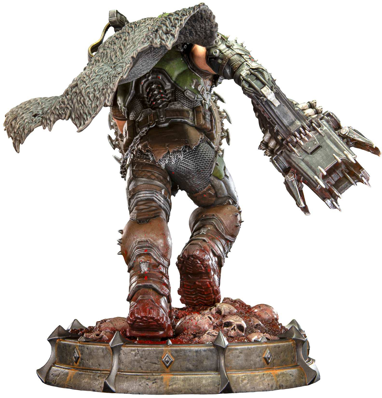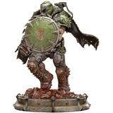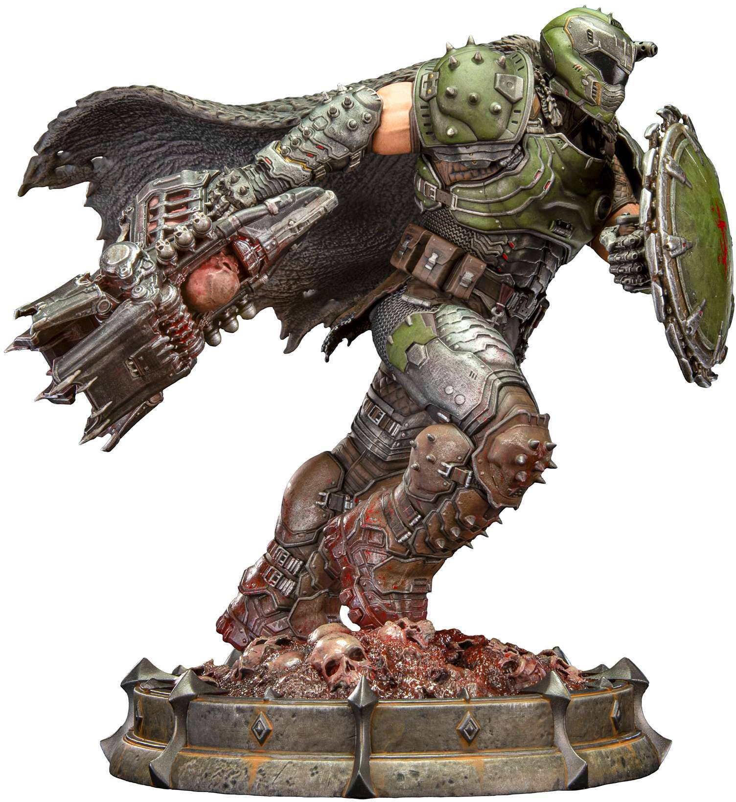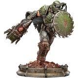 Dark Horse brings us an impressively detailed PVC display statue of the Doom Slayer from "Doom: The Dark Ages"! The Doom Slayer forges forward, his balance suggesting he may be struggling to walk into a strong wind, with his cloak flowing behind him; his pose allows us to appreciate every aspect of his armor, helmet, and weapons. The painstaking paint job brings out the mud and gore on his boots, the dull sheen of his mailed outfit, and the color of the skulls he walks across; even the base itself is carefully painted to resemble weather-beaten metal. Order this powerful figure for your own collection today!