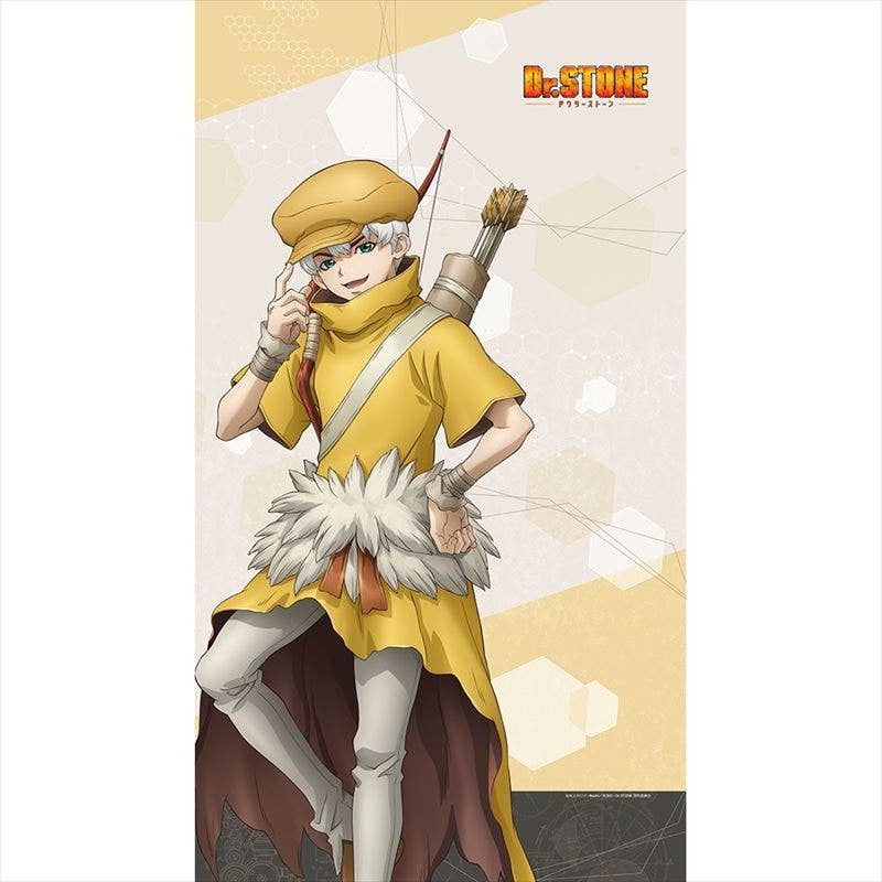 A Japanese-style noren curtain, featuring full color artwork of "Dr. Stone" character Ukyo Saionji. It comes in a solid state, but features guide lines to cut with scissors should flaps be desired. Create a stylish divide between rooms with this fun noren curtain, so don't miss out, be sure to order yours today!