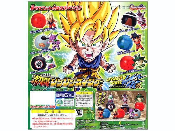 Here's a superb gashapon offering from Bandai featuring a selection of characters from "Dragon Ball Kai" as miniature mascot figurines! The lineup consists of Super Saiyan Son Goku & fourth Dragon Ball, Ginyu & pod-type spaceship, Piccolo & Majirushi, Freeza & pod, Son Goku & Earth, and Porunga & sixth Dragon Ball, for a total of six possible types to trade and collect. Sold by the randomly packed box of 10. Please note that these are gashapon figures, and are individually sealed in their plastic "eggs" and randomly packed into boxes of 15. As a result we are unable to honor requests for individual or specific figures, nor can we promise you which figure(s) you will receive in a box. Please order only if you are willing to accept any of the possible types.