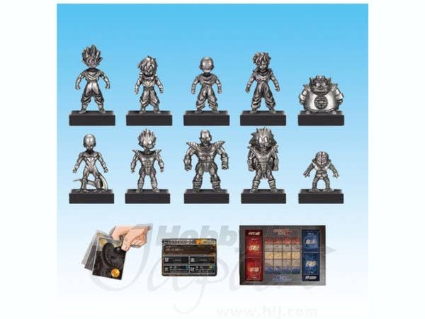 Get into the ancient Japanese game of shogi with the Dragon Ball characters! This set contains ten cast-metal figures, the battlefield board, dice, and cards. For ages 8 and up.Please note that the photos shown are of a prototype; the production version may vary.