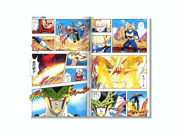 This all-color anime comic continues the Cell Games saga from the "Dragon Ball Z" TV series with screen caps from the show arranged in manga format with dialogue balloons. Text is in Japanese with furigana. Softcover with dust jacket.