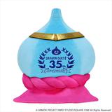 This Smile Slime stuffed plush toy is dressed for adventure with a crown and cloak! A logo commemorating the 35th anniversary of "Dragon Quest" is embroidered on his back. Order him for your own collection today!
