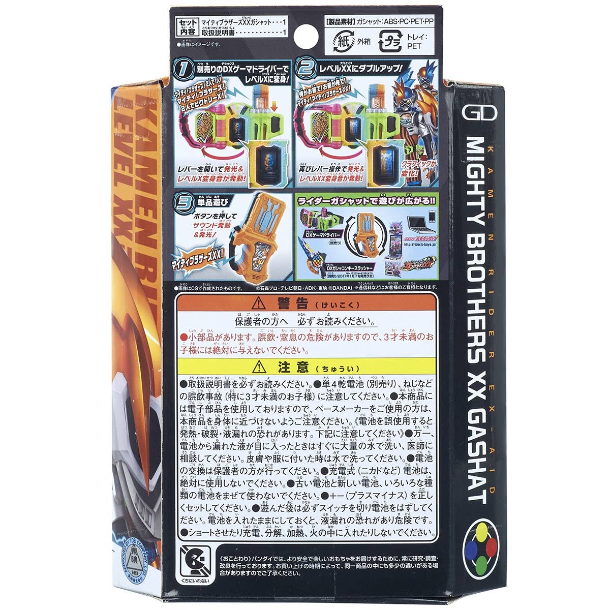 Advance to level XX with the DX Mighty Brothers XX Gashat from "Kamen Rider Ex-Aid"! Enjoy its sound effects alone, or use with the DX Gamer Driver (sold separately) for awesome new sound and light effects!