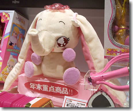 Big, fluffy Pao-chan moves her arms, wiggles her entire body, and raises and lowers her trunk. Requires three C-cell batteries (not included).
