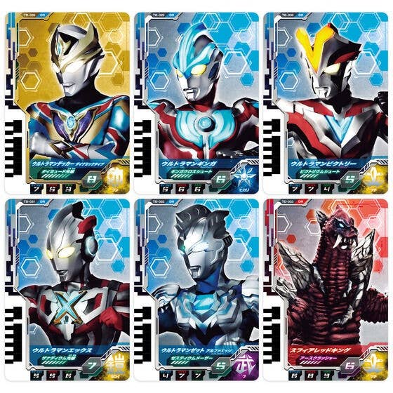 This is a set of 6 Ultraman Dimension Cards featuring the Dynamic Type, the new form of Ultraman Decker.