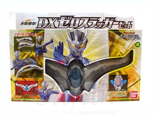 From the December 2009 Ultraman movie, here's Ultraman Zero's ultimate multi-weapon, the Zero Slugger! Includes parts for "Zero Slugger" mode, "Zero Twin Sword" mode, and "Zero Twin Shoot" mode. Press the color timer, and it lights up and makes sound! Requires two AAA batteries, sold separately. Belt for the color timer fits sizes 45cm-68cm. Does not include an Ultraman Zero figure.