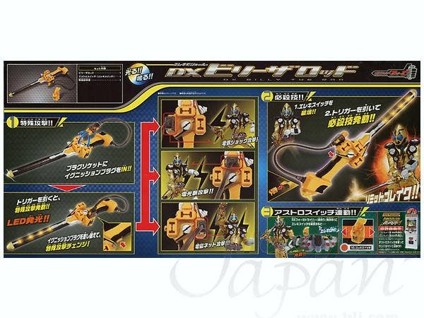 Here's Kamen Rider Fourze's first hand-held weapon, "Billy the Rod."  In Japanese, the word "bili" (usually used twice, as in "bilibili") is the word they use to describe the sensation of being electrocuted, so this is sort of a clever pun name.