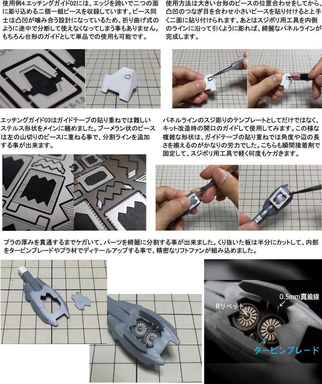 In order to create this product, we have utilized our experience in prototype production and writing for model magazines, and included many pieces that can be used to engrave frequently used details specifically for character models.