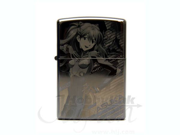 Here's a beautiful top-quality Zippo lighter featuring a gorgeous laser engraving of Asuka on the front, and the "Evangelion: 2.0 You Can (Not) Advance" title with the "Production-Model 02" text on the back. The black nickel lighter measures 5.5cm tall by 3.8cm wide by 1.3cm deep.
