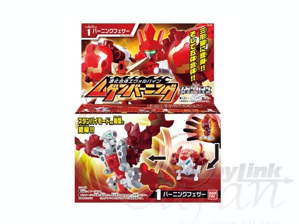 By combining 5 different machines - Burning Feather, Burning Liger, Burning Rex, Burning Frog, and Burning Beetle, - you can make the Mugen Burning machine! Sold by the randomly packed box of 12. Please note that these are trading items and are individually sealed and randomly packed in boxes of 12 by the manufacturer before shipment to HobbyLink Japan. As a result we are unable to honor requests for individual or specific items, nor can we promise you which one(s) you will receive in a box. Please order only if you are willing to accept any of the 5 possible types.