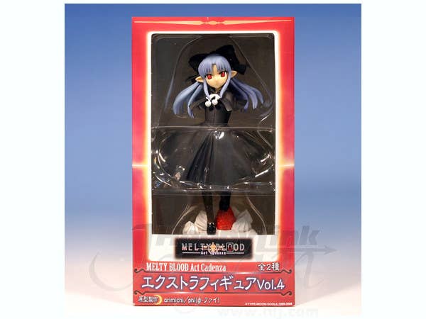 Here's a very cool UFO-catcher prize item: an 18cm PVC figure of Len from "Melty Blood: Act Cadenza" in her black dress, based on an illustration by Shichikusa! She comes standing on a delicious-looking display base, a giant slice of strawberry cake. Please note that figures such as this are mass produced, and as a result some inconsistencies in finish and painting may occur; these are not considered manufacturer's defects. If you absolutely must have perfection, prepare to do some touch-up work on your own.