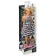 This is a posable doll with real fabric clothing, designed for collectors.