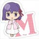 A die-cut sticker featuring Sakura Mato from "Fate/stay night: Heaven's Feel" next to a large letter "M."