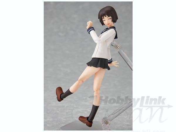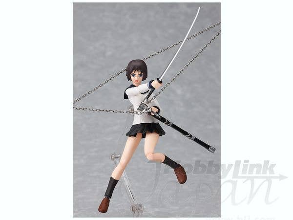 The cheerful heroine of "Garei Zero," Kagura Tsuchimiya, now makes her debut as a fully posable Figma! The youthful spirit hunter, clad in her school uniform, has three interchangeable facial expressions: a smile, a laughing look with closed eyes, and a mid-battle shouting face. Spare hands are also included, as are her red cell phone, her swords Michael #12 and Dokkosho and a scabbard, a chain that can be attached to Michael #12, and a stand with a jointed posing arm for intense midair fighting poses! She's about 13cm tall, and she's ready to rock your world now!Please note that the photos shown are of a prototype; the production version may vary. Also, figures such as this are mass produced and as a result some inconsistencies in finish and painting may occur; these are not considered manufacturer's defects. If you absolutely must have perfection, prepare to do some touch-up work on your own.