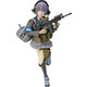 Optional parts include an alternate fluttering skirt to recreate the package art, as well as a handgun that can be holstered, a machine gun, a tactical school bag and a transceiver.