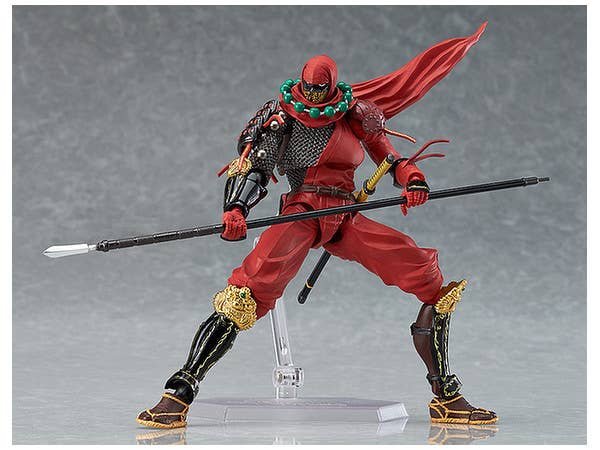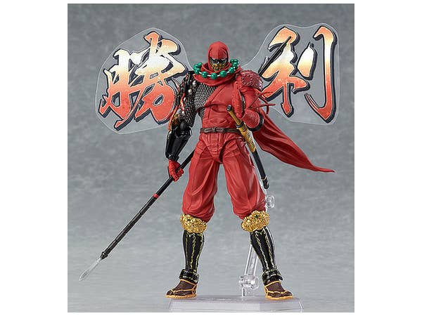 Using the smooth yet posable joints of figma, you can act out a variety of different scenes. A flexible plastic is used for important areas, allowing proportions to be kept without compromising posability. His spear and sword are both included, as well as a fluttering scarf part for more dynamic action poses. A selection of speech bubbles and battle texts are included on plastic sheets to display beside him. An articulated figma stand is included, which allows various poses to be taken. Stands about 15cm tall.