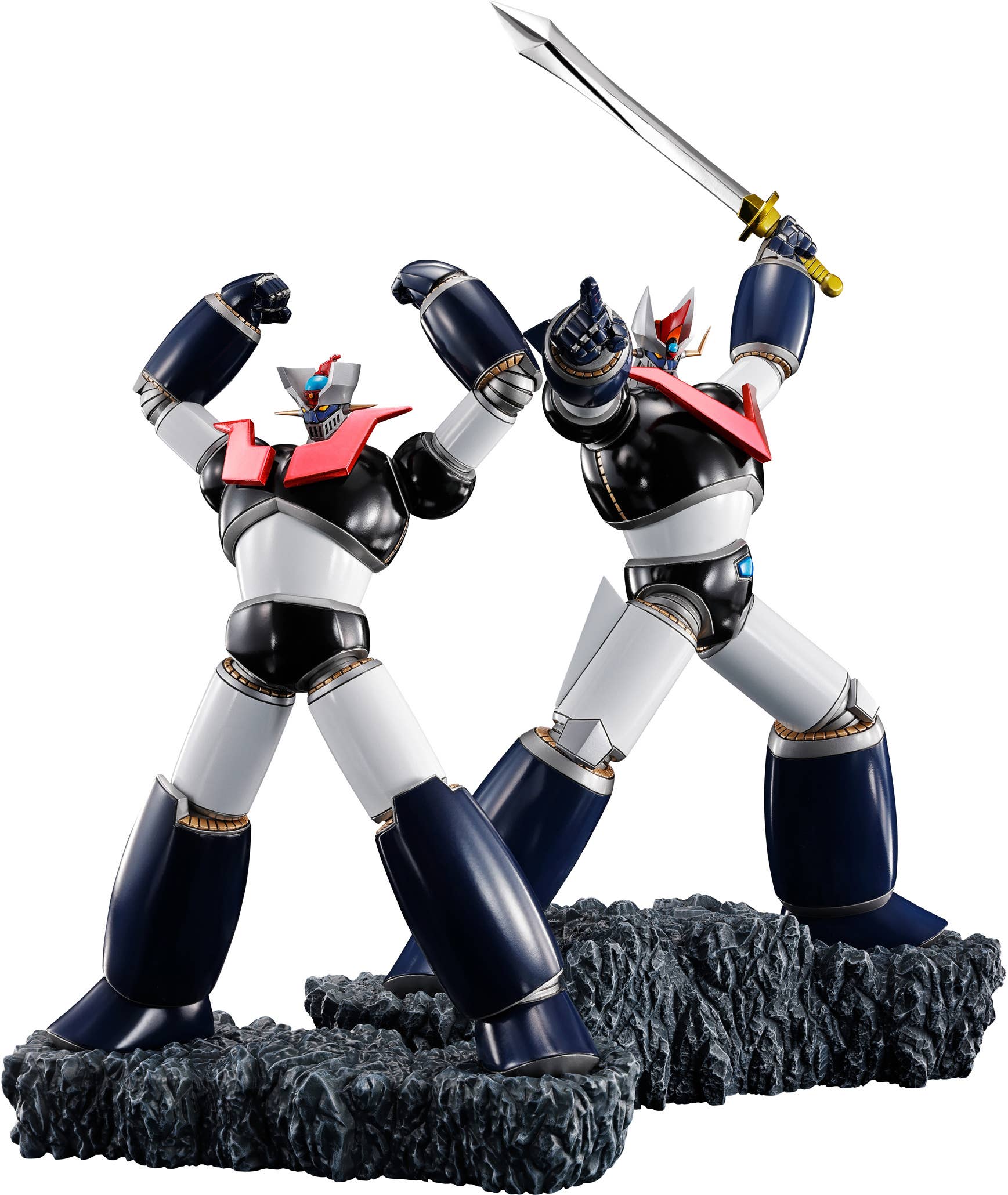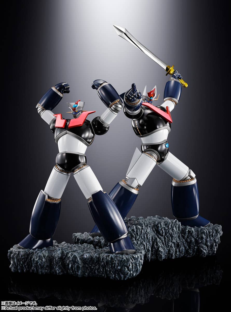 The newest entry in Bandai's "Touche Metallique" division of their "Figuarts Zero" lineup, designed by the talented sculptor Tomonobu Fuchi, is this "Double Mazinger" set, which includes both Mazinger Z and Great Mazinger! Each of the highly detailed figures is independent, and they can be displayed individually or together. You can show them off side by side, or standing back to back! The red radiation plates on their chests, the silver blade and golden hilt of Great Mazinger's sword, and the Mazinger Blade are all beautifully plated for an assertive gleam. Order this impressive set for your own collection today!