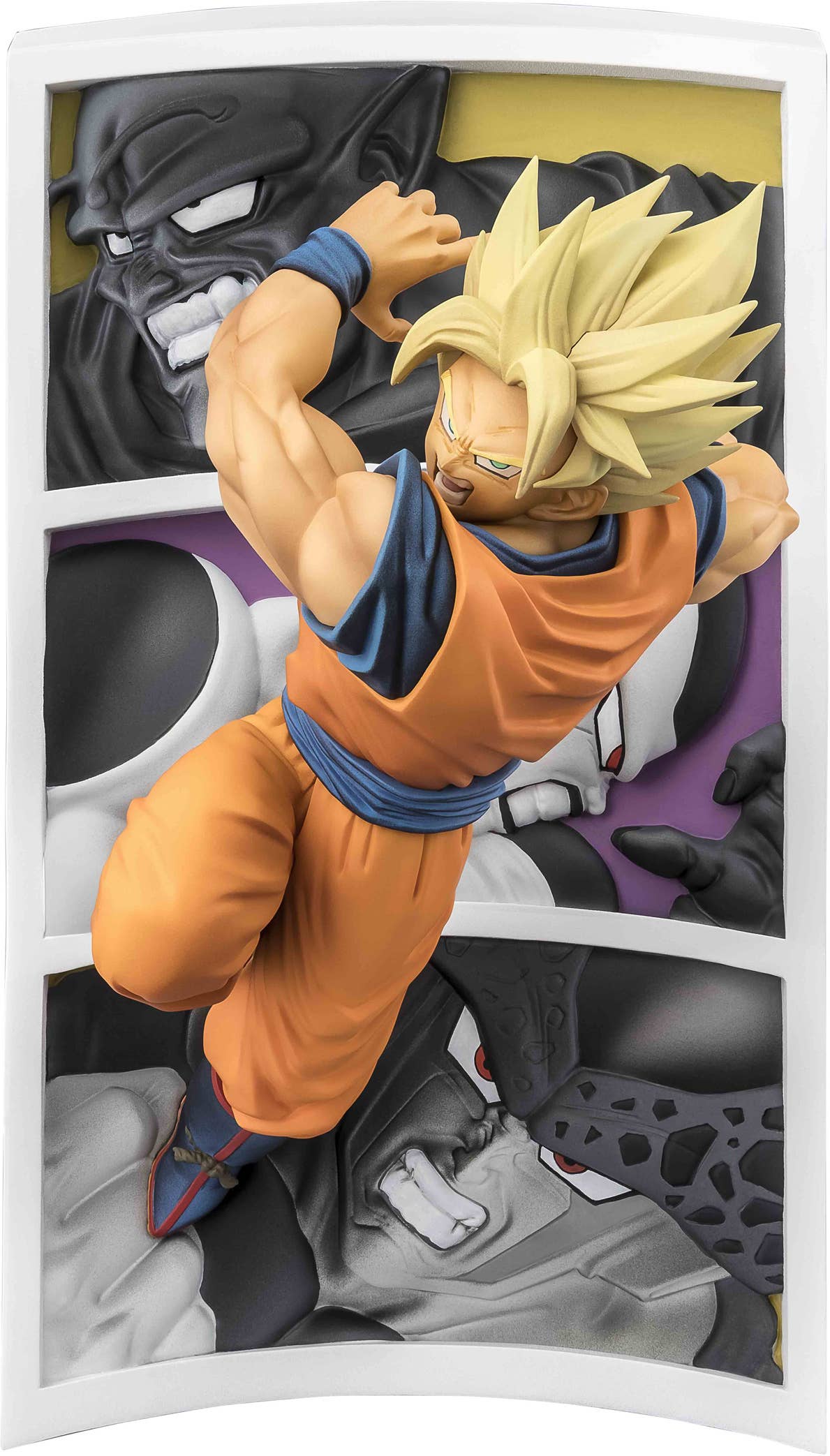 Super Saiyan Son Goku from "Dragon Ball Z" joins the "FiguartsZERO" lineup from Bandai! This figure recreates the dynamic illustration of Super Saiyan Son Goku with his historical enemies King Piccolo, Frieza Fourth Form, and Perfect Cell in the background! This action-packed display would look amazing on your shelf -- order yours today!