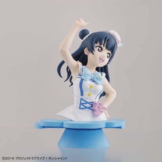 This fun and colorful kit builds into Tsushima Yoshiko from "Love Live! Sunshine!!" Parts come molded in color, stickers are included, and the completed bust will measure approximately 13cm tall including the stand. Be sure to collect and build all of the members of Aqours!