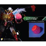 The Goldymarg has a wide range of motion, including the ability to kneel on one knee, and it can be transformed into its Beagle form with some original mechanisms added. It can also transform into the Marg Hand (with independently moving fingers) and Goldie Tank form! Combine the Marg Hand with the Pose + Gaogaigar to reproduce the Hammer Connect! The Stealth Gao II is precisely detailed; the engine part can rotate so you can appreciate its intricacy. The wings, back plate and tail can be deployed to duplicate its heat-dissipation mode! Attach the Stealth Gao II's Protect Ring to Gaogaigars left arm to reproduce the Protect Wall; attach it to the right arm to reproduce the Broken Phantom. The nucleus of the Sonder is reproduced with clear material and fluorescent paint, and you can view it under a black light (not included) to see it glow! Combine the Goldymarg and the Stealth Gao II with Pose + Gaogaigar to recreate the mighty Star Gaigaigar!