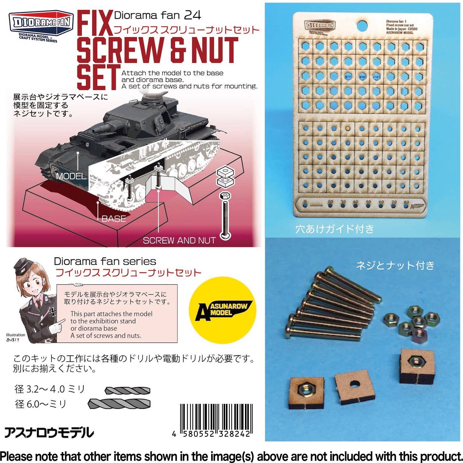 Two types of parts, large and small, and a simple wrench for tightening screws are included in the set of 8.