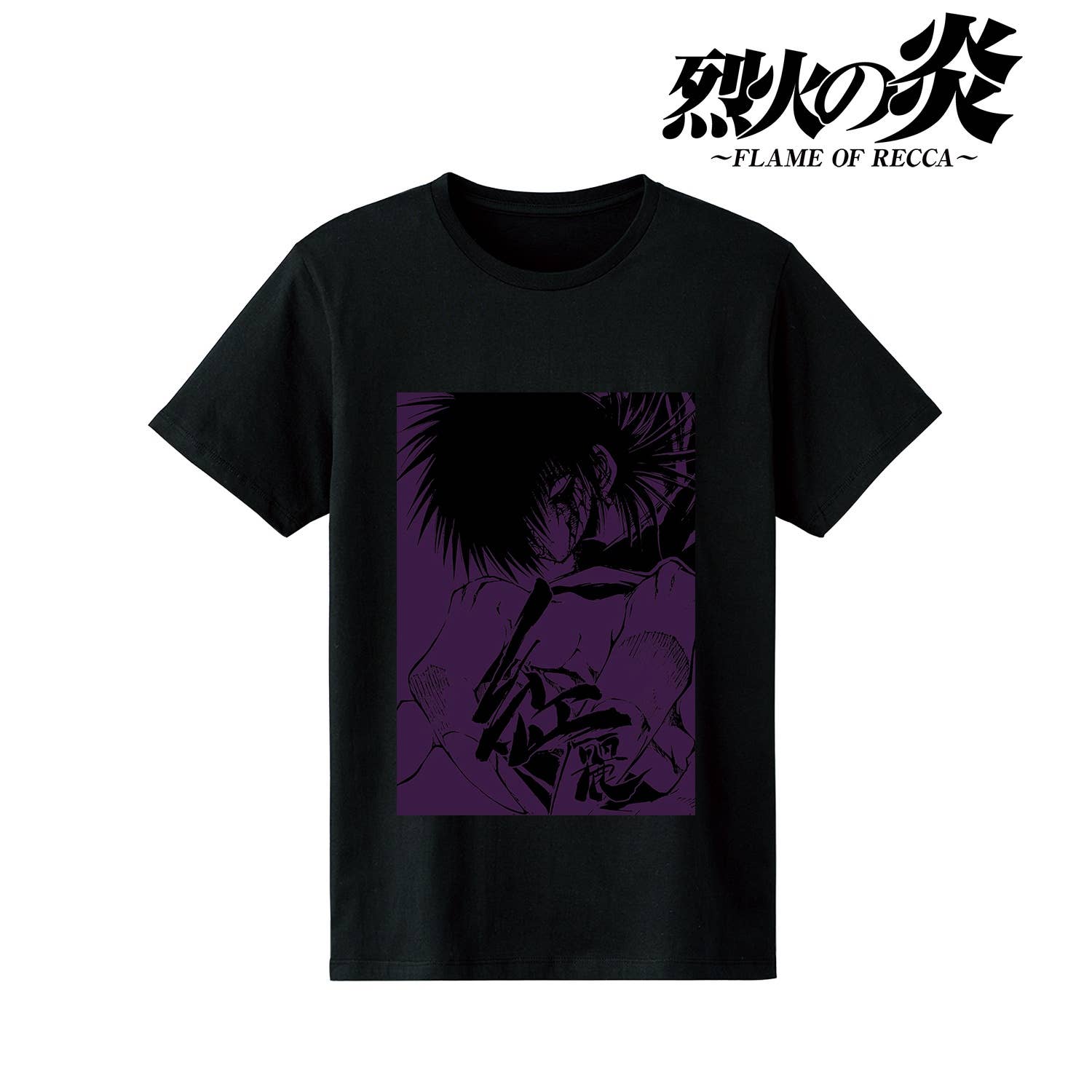 "Flame of Recca" presents a new line of character T-shirts for all your clothing needs. This stylish black T-shirt features purple and black artwork of the character Kurei printed across the front, and makes for a great addition to any fan's wardrobe. Order today!