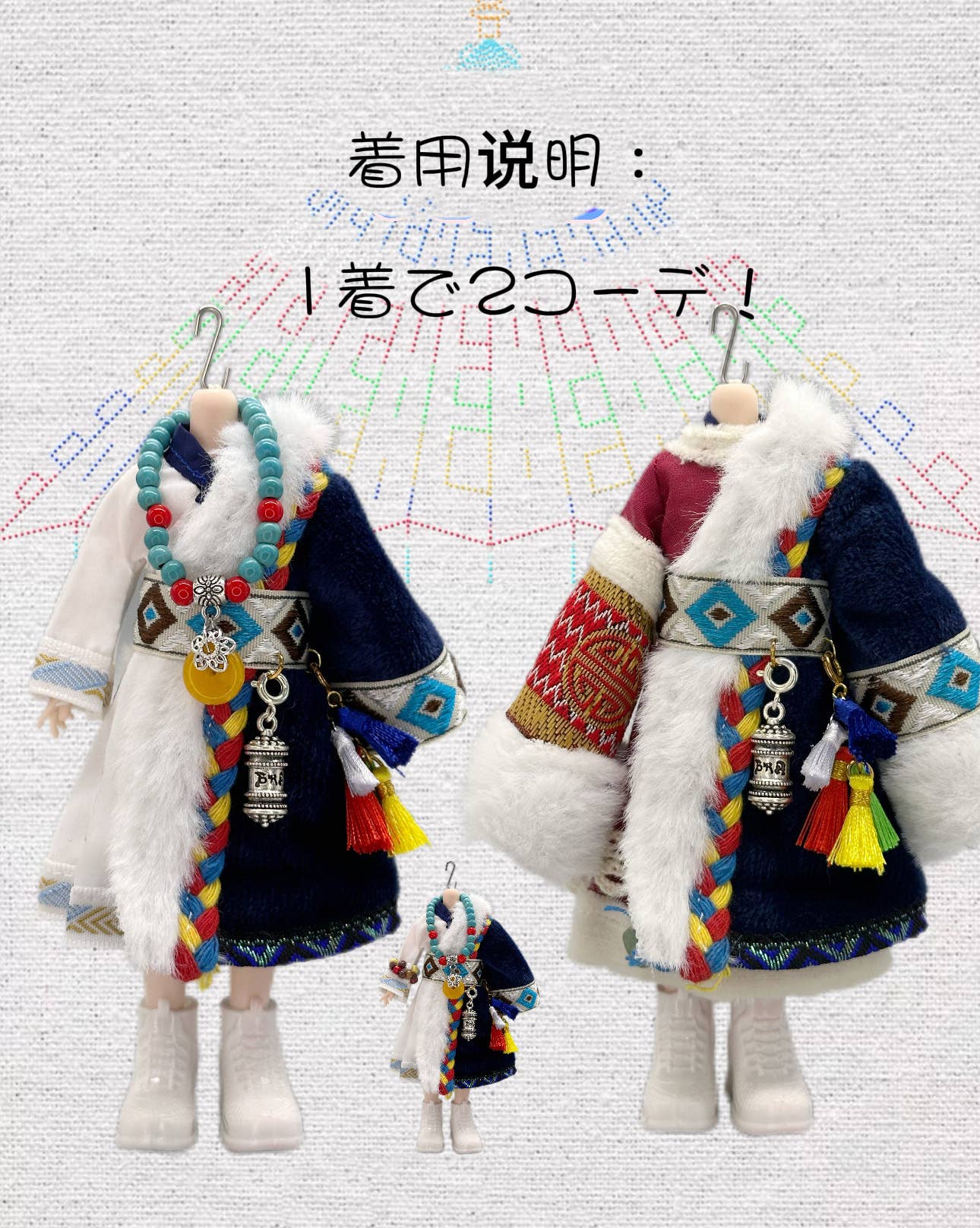 The Chinese doll clothing brand SNOOM brings us their "Folk Costume Series" of doll clothes with the "Dede" outfit! This faithful recreation of traditional Tibetan attire features the distinctive Chuba, worn with one sleeve slipped off the shoulder, as well as a beautifully patterned geometric belt and decorative ornaments evoking the look of amber and turquoise. Your dolls will love it -- order this amazing outfit for your own collection today!