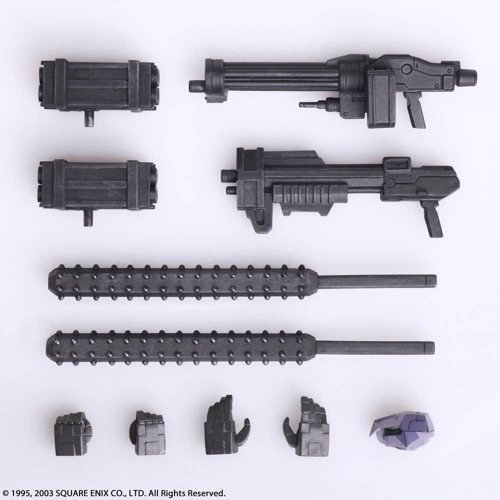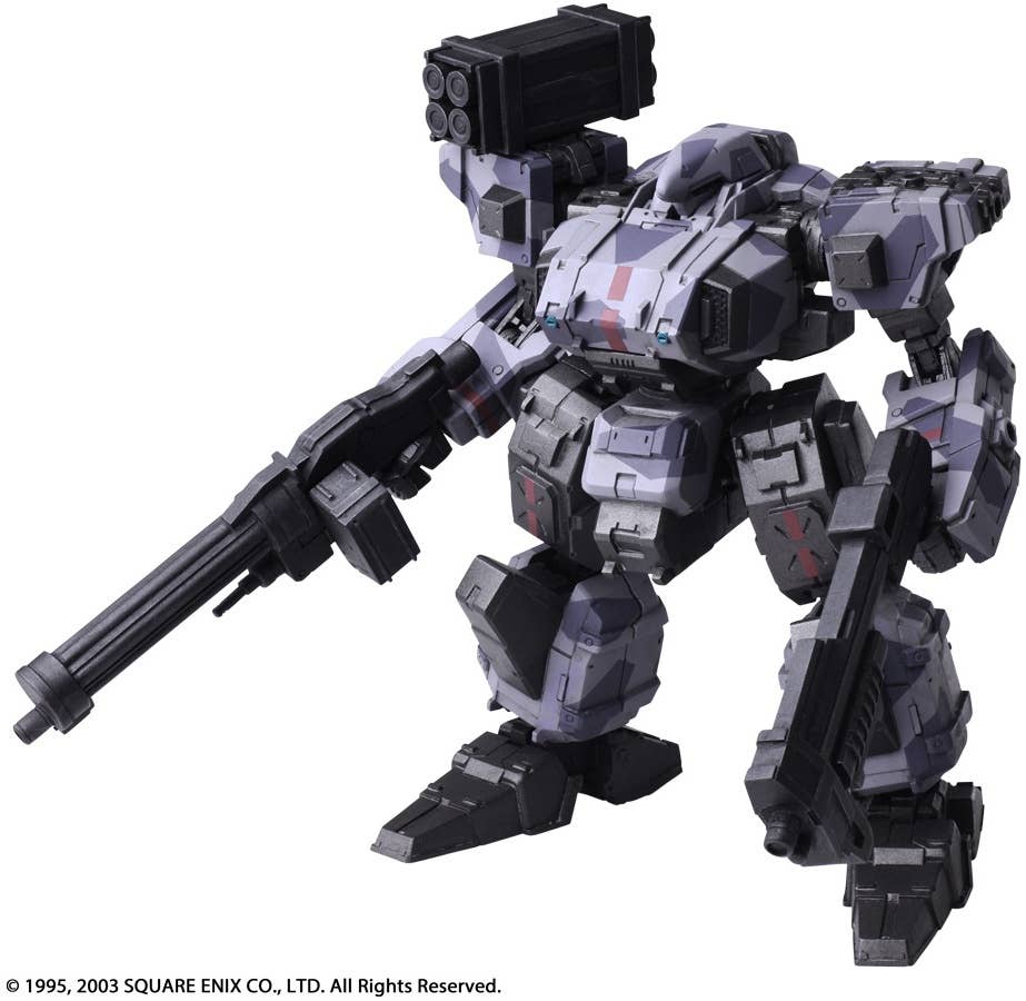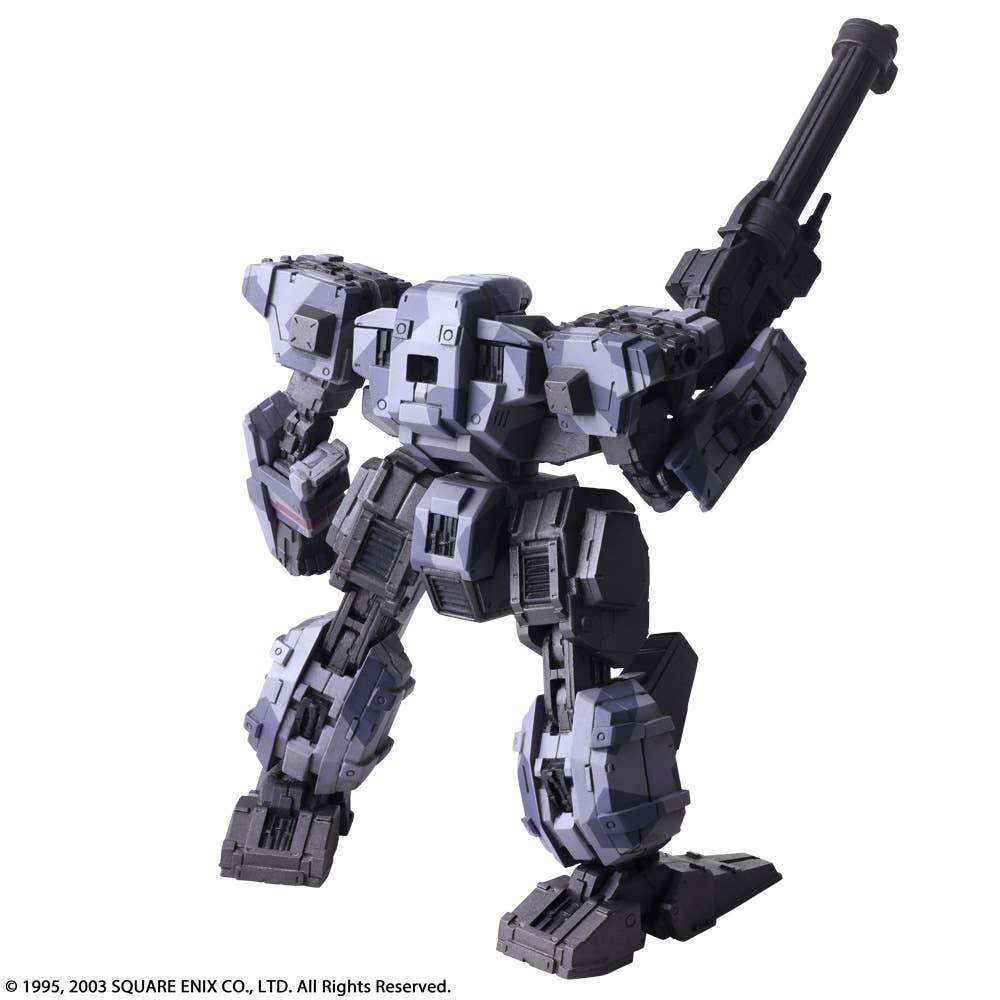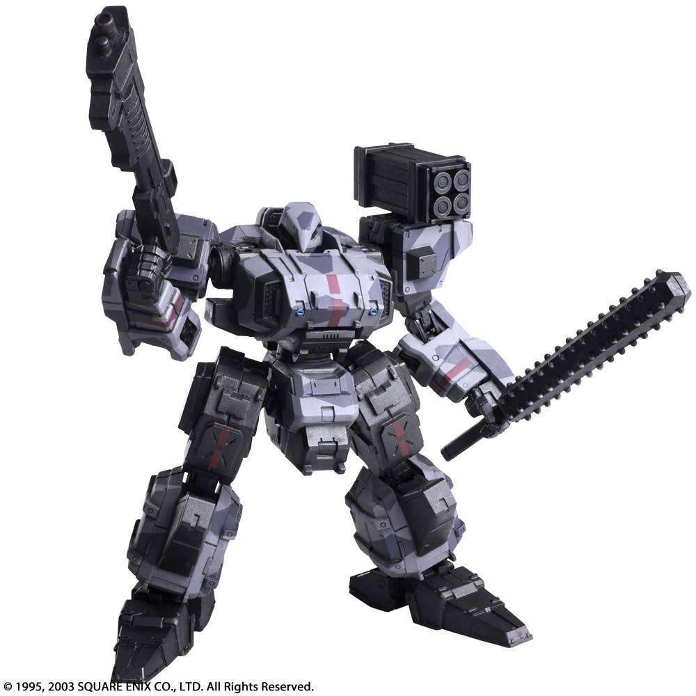 Square Enix brings us a line-up from "Front Mission First" of the Wander Arts Frost featuring a diverse selection of different versions, such as this Urban Camouflage version. It features replaceable parts and points of articulation - as well as tons of different weapons. It measures approximately 10.5cm x 6.2cm x 12.4cm in size. Order today!