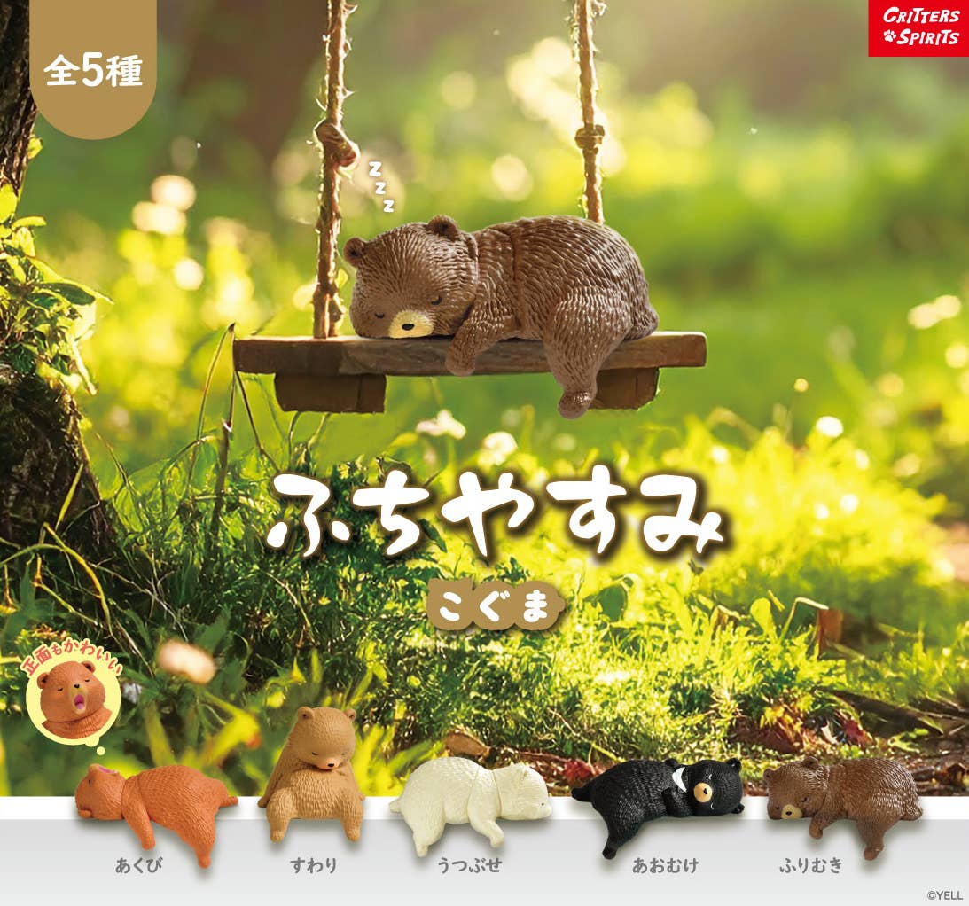 These sweet little baby bears are so sleepy, they can "bear"-ly keep their eyes open! This "Fuchiyasumi" figure lineup from Yell features adorably sculpted little bear cubs with rounded bottoms and big bellies. Their plump, low-center-of-gravity silhouette stands out when you display them draped over the edge of your favorite shelf! There are five different figures to collect and trade, randomly packed in boxes of ten. Order yours today, and sleep tight!