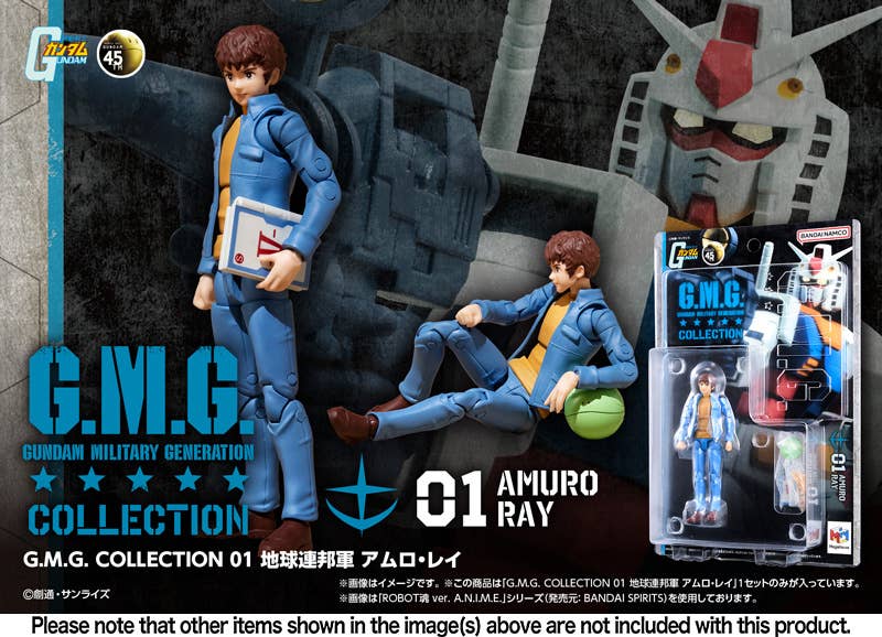 MegaHouse's "G.M.G. Collection" figures are now available in affordable blister packs! Each fully posable figure is about 10cm tall, and comes with interchangeable hands and accessories; the blister packs are easy to open, and they're also great for displaying your figures without opening them! This figure of Amuro wears the casual clothing he wore in Episode 1 of "Mobile Suit Gundam," and when he escaped; he comes with a V Operation file and Haro. Place your order today!