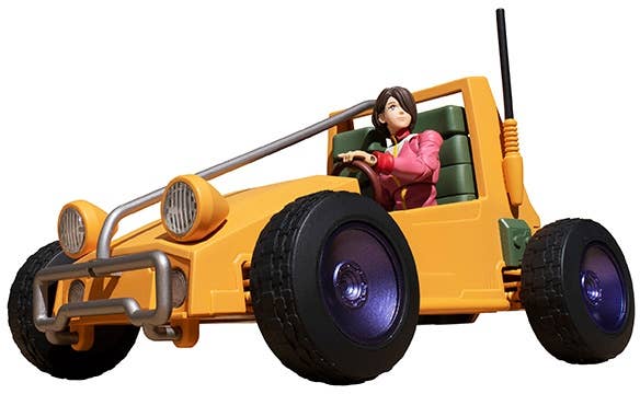 MegaHouse adds a new set to their "G.M.G" (Gundam Military Generation) action-figure lineup -- a female soldier wearing the uniform of the Earth Federation Forces White Base crew, and a buggy! A backpack, rifle and interchangeable hands are included; in addition, her head can be swapped with that of the previously released Sayla Mass figure! The buggy is the perfect scale for G.M.G figures, and can transform into its hover form as well. (Please note that the tires do not roll.) Order yours today!