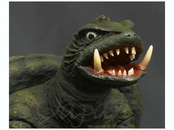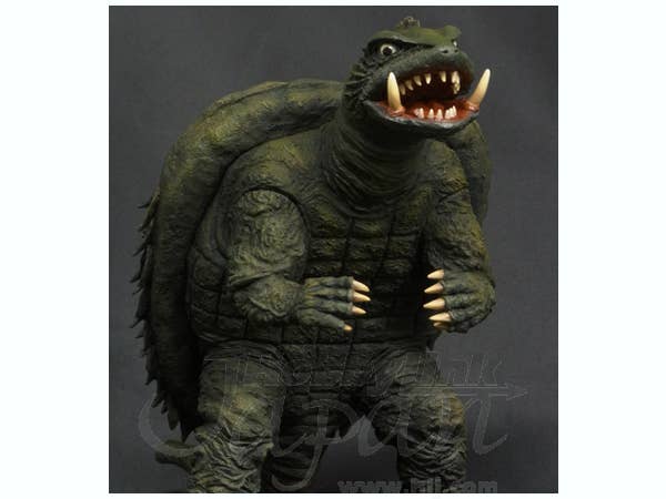 A fully-finished fixed-pose vinyl figure of everybody's favorite flying turtle, Gamera! This is the version as he appeared in his 1965 debut movie, Gamera the Invincible! Stands 23cm tall.