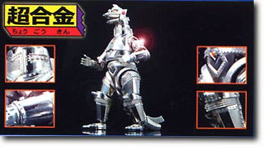 Very cool chogokin Mecha-Godzilla 1974. Requires some assembly (head, hands, tail) but otherwise is completed. Can be flattened out for "flying mode". Head turns with the press of a switch on its neck. Highly articulated at all major joints; fires "Home-U" shots from its knees, and finger missiles. Chest opens up to reveal the "Cross attack Beam".