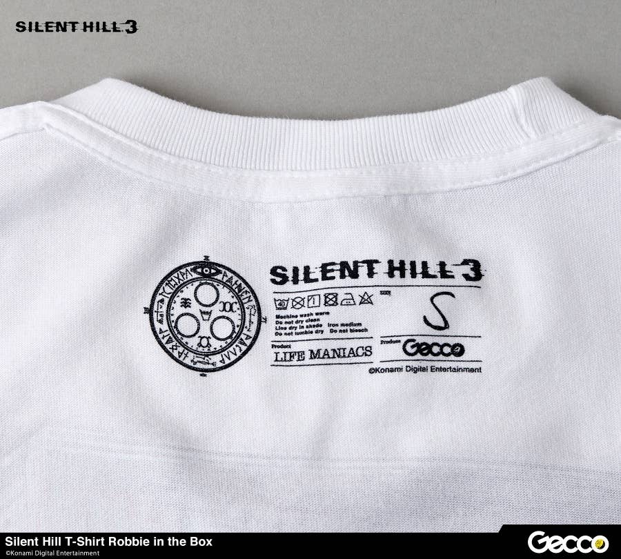 Gecco's new line of apparel Life Maniacs gets an eerie new addition with this brand new T-shirt, featuring an illustration of the iconic "Silent Hill" Robbie in the box printed across the front. This stylish T-shirt is made from a durable heavy cotton to help retain its shape with with long term wear, and makes for an excellent addition to any fan's wardrobe. Don't miss out, be sure to order yours today!