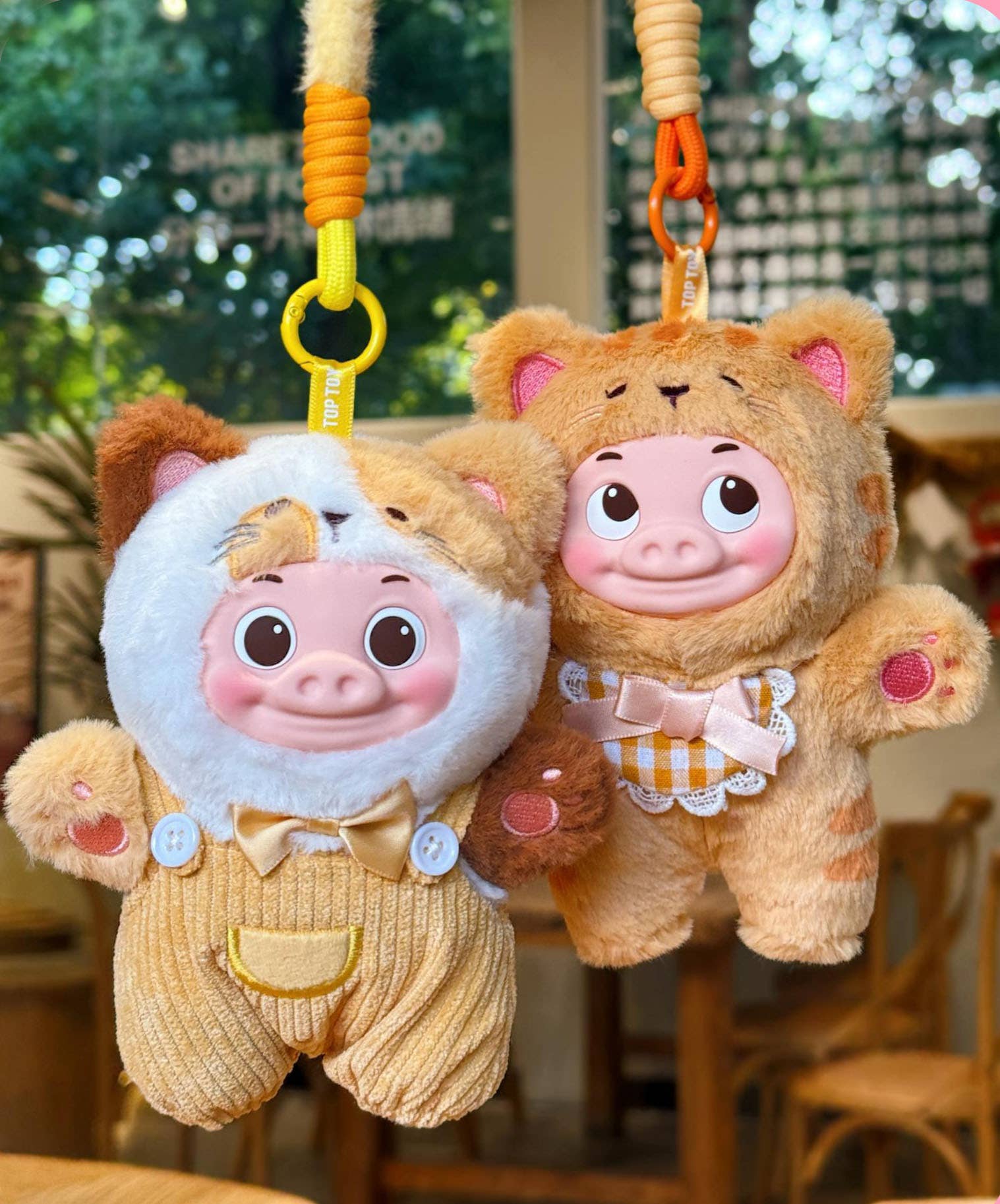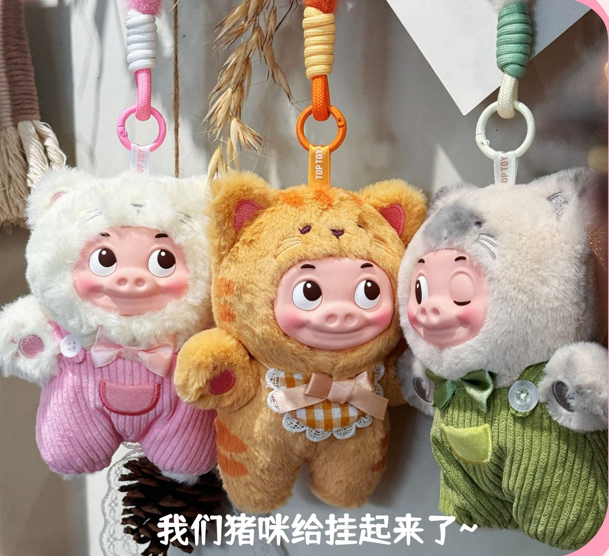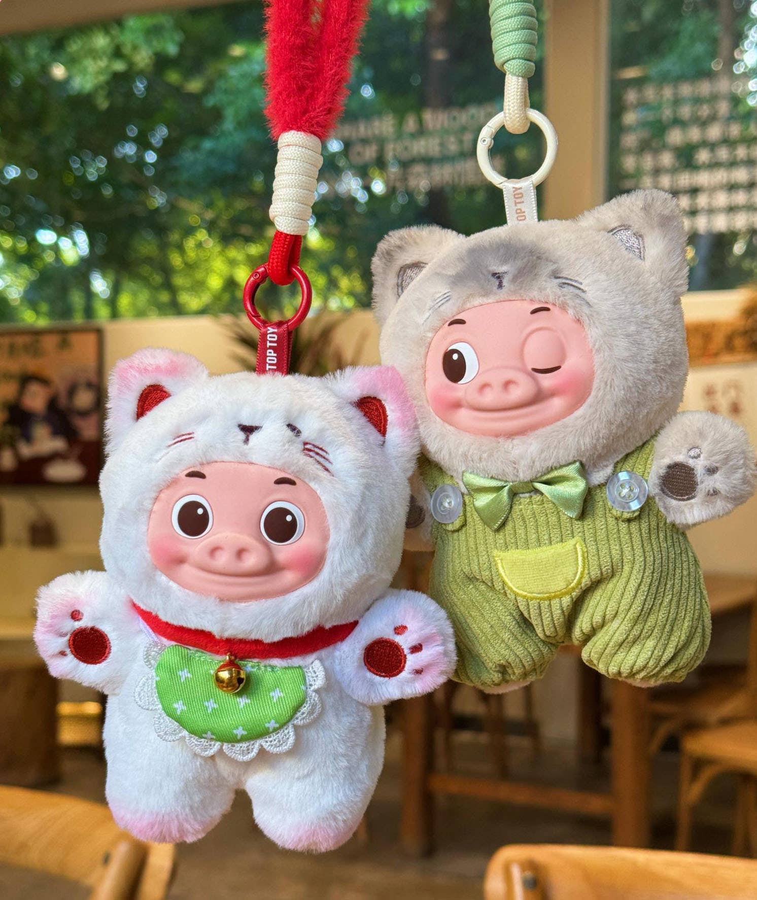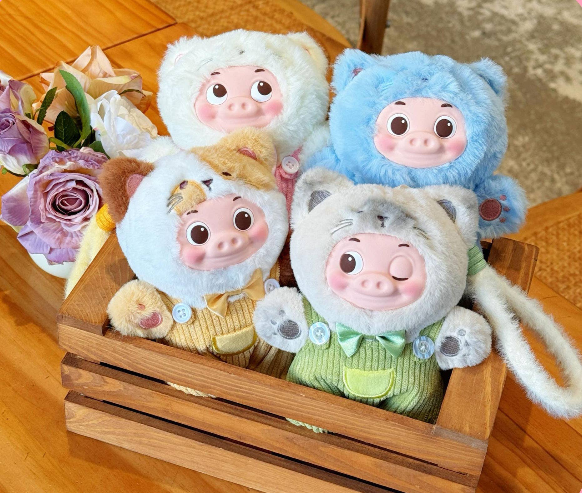 The designer toy maker AIYE brings us an adorable lineup of "Piggy Or Kitty?" trading plush toys from the Chinese children's anime "GG Bond"! These incredibly cute piglets are dressed up in cat costumes -- there are six different plushes to collect and trade, plus a secret plush; they're randomly packed in boxes of six. Order yours today!