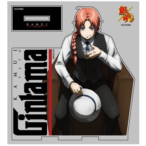 An acrylic stand featuring full color artwork of "Gintama" character Kamui wearing a black noir themed costume. Don't miss out on adding this fun acrylic stand to your collection today, so order now!