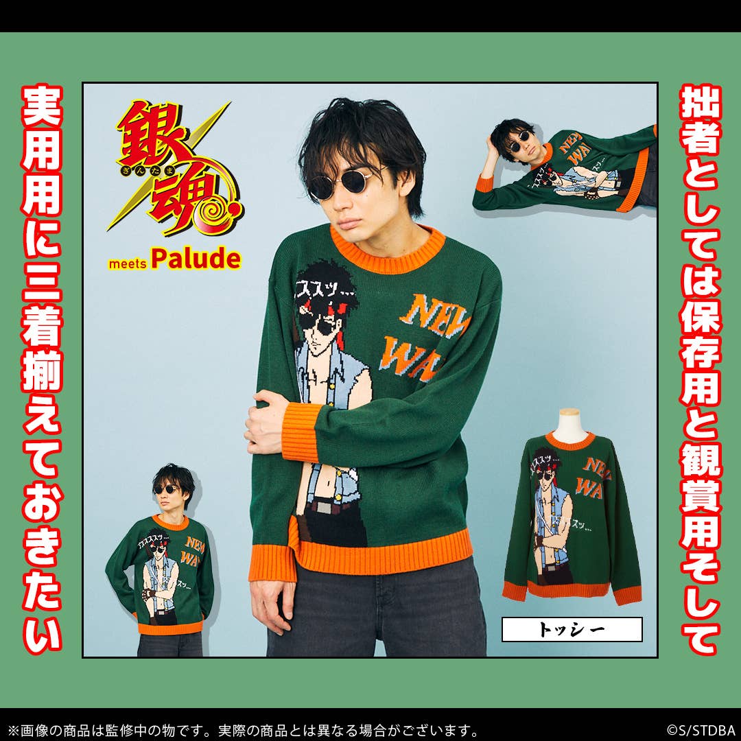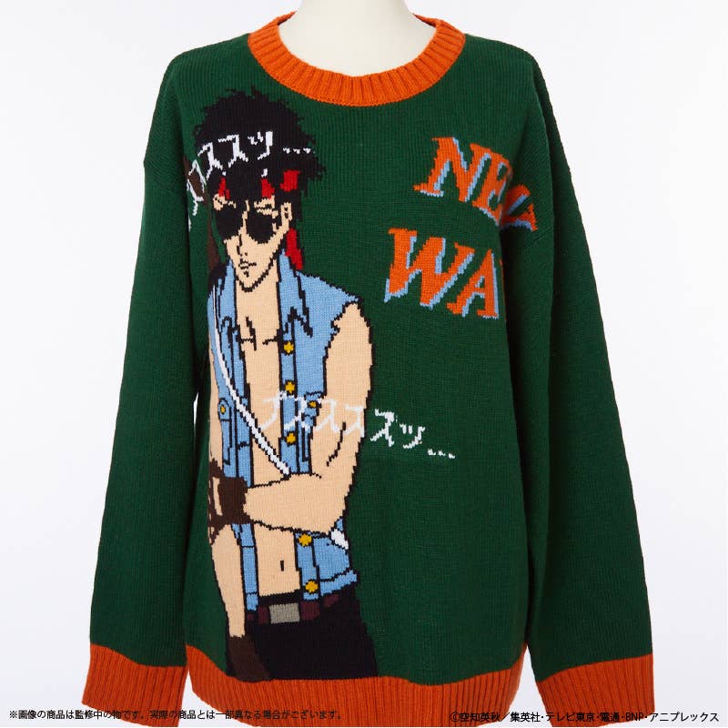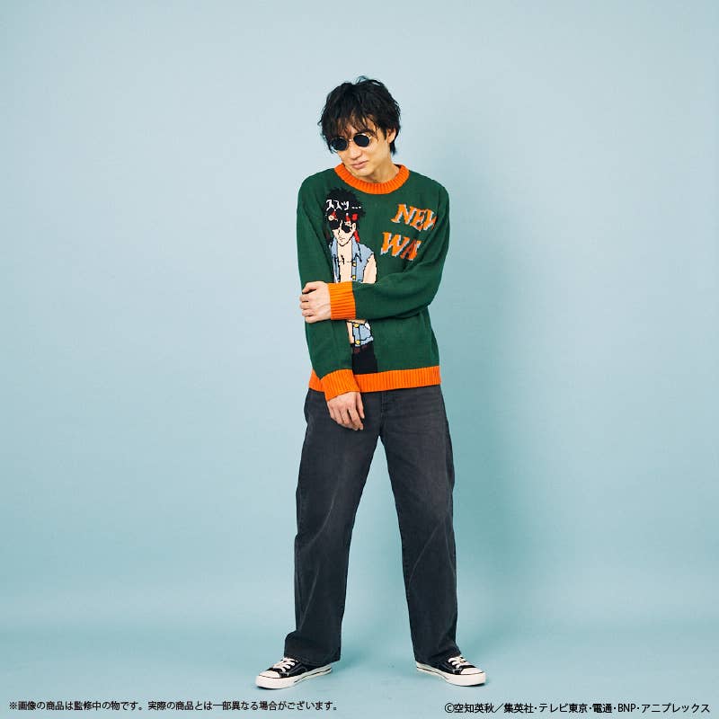 This deliberately ugly sweater is inspired by Tootsie from "Gintama"! Hijikata Toushirou's alternate personality appears on jarring green and orange colors, to make this sweater as intentionally hideous as possible. This unisex sweater is the perfect thing to wear at Christmas parties and other events -- order yours today!
