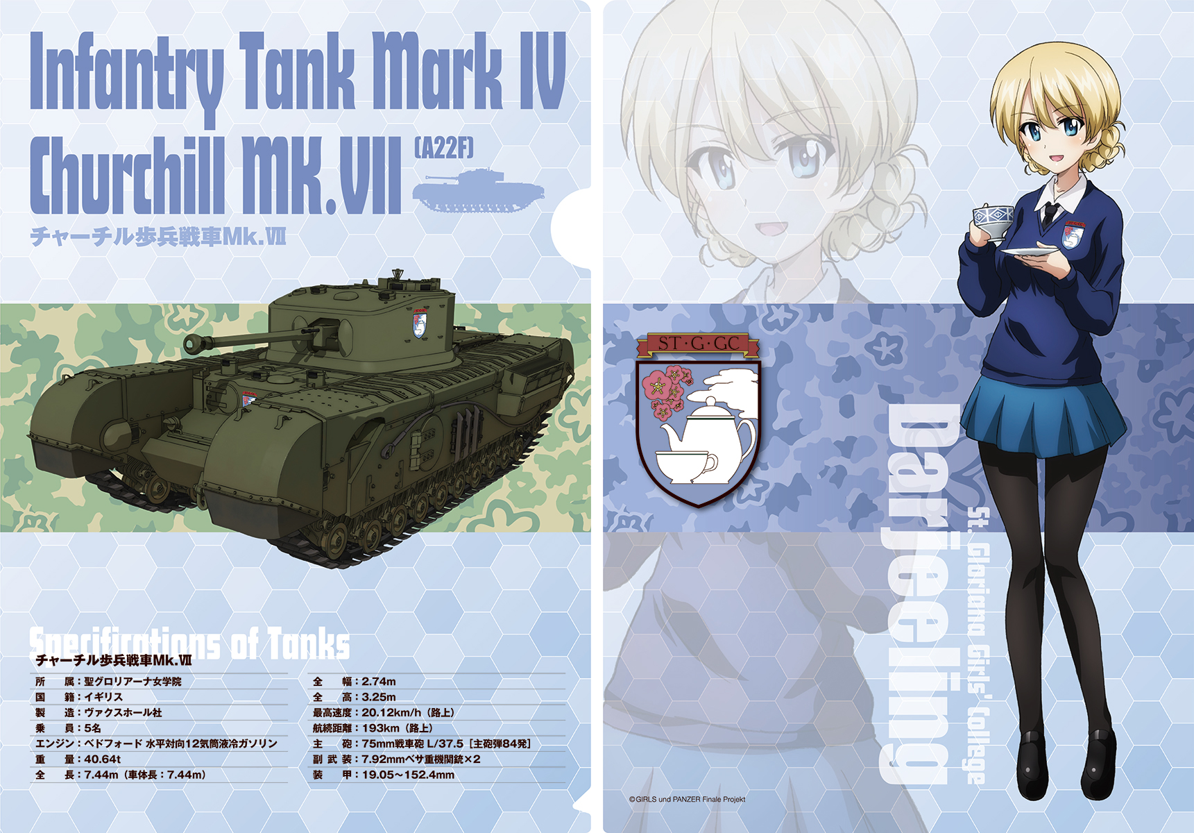 Soldier! Your notes are a mess! But not to worry, your greatest ally has arrived: the “Girls und Panzer das Finale” clear file!. To celebrate the first of six Girls und Panzer das Finale feature films, this Darjeeling and Churchill Infantry Tank themed lavender clear file has been released and is perfect for organising your A4 sheets. Don’t be sloppy and ORDER! yours today.