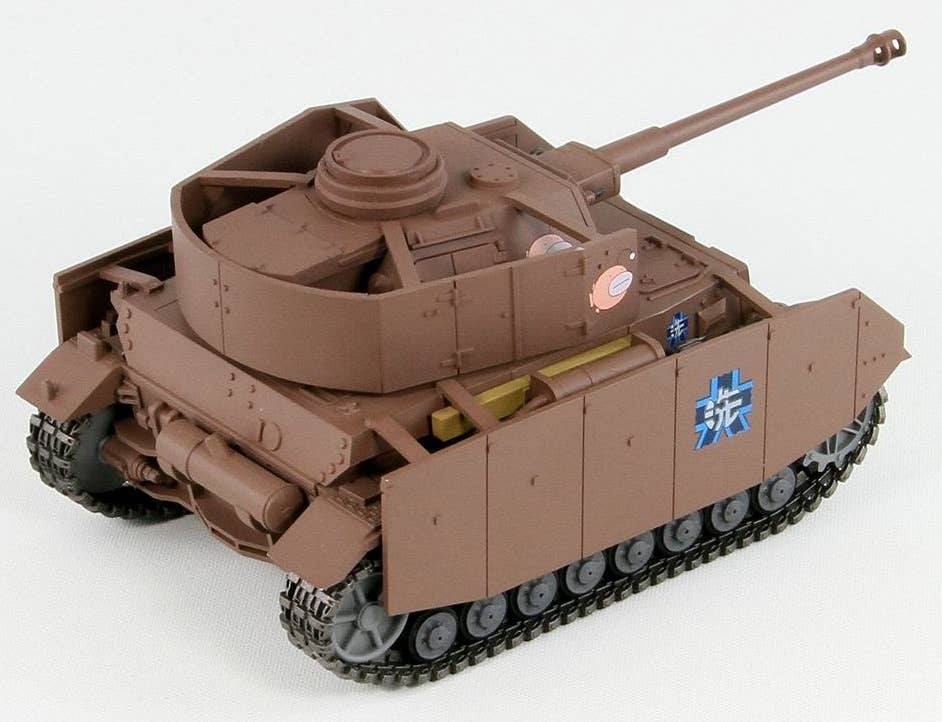 This model kit from Pit-Road of the Panzer IV Ausf.H (D-spec) with additional armor on the sides of the hull and around the turret, as seen in the end of "Girls und Panzer," is slightly super-deformed in style, yet still incredibly detailed! Small parts such as the on-board tools and rolling wheels are prepainted, and the Anglerfish Team's markings are also printed on. The hatches can be opened or closed, and even better, an acrylic stand of the Anglerfish team is included, as is a bonus championship flag! You'll love it -- order yours today!