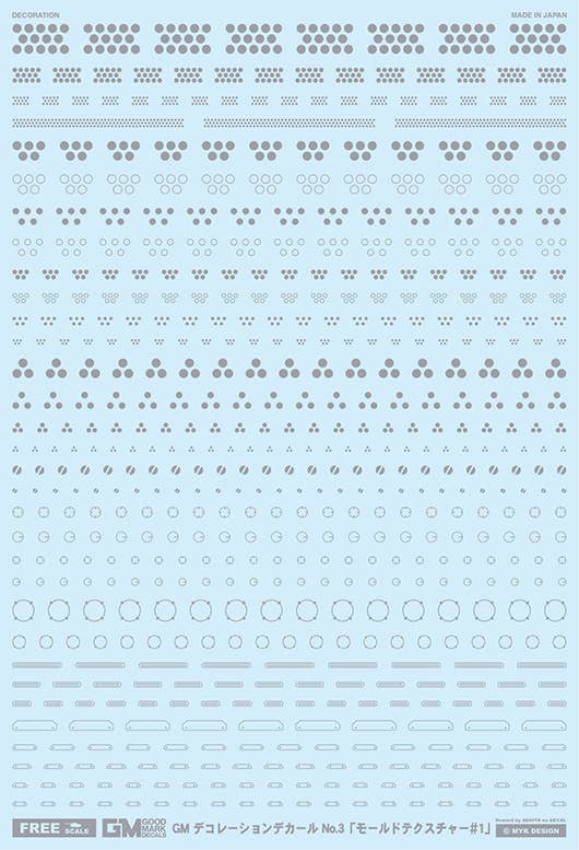 The "GOOD MARK DECALS" are perfect for character models and SF mecha! The "Mold Texture" series lets you easily replicate intricate details with decals!