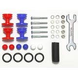 This product includes two each of red and blue 13-12mm double rollers with rubber rings. The 13mm roller side supports your car as it whizzes around the circuit, and when it turns the car leans and the 12mm roller takes over. In this way, your car gains great stability through corners, aided by the rubber rings slowing the car slightly when it comes into with the circuit wall. Screws, nuts, stabilizer balls, a hex wrench and more are included.