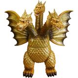 As part of the Godzilla 70th anniversary project, the historic Godzilla soft vinyl "Greatsaurus" figure and his friends and foes have now been faithfully reproduced by Plex using new molds! Godzilla's foe King Ghidorah has three heads, three necks, two long tails, and golden scales covering his entire body, as well as two thick legs and a pair of enormous wings. This figure has been newly sculpted in the rounded retro form that was a hallmark of the "Kingsaurus" series. He's moveable at the necks, heads, waist, legs, and wings, and of course, the soles of his feet bear the telltale footprints! Order him for your own collection today!