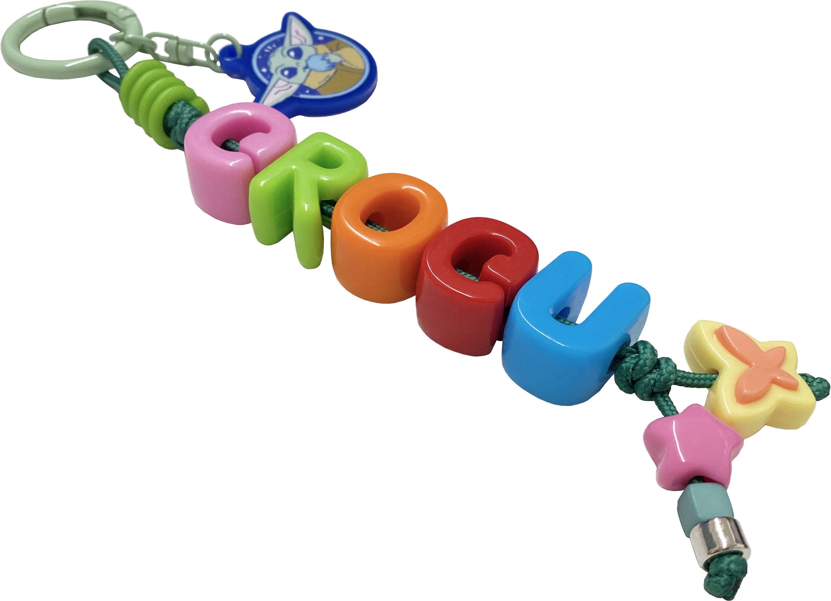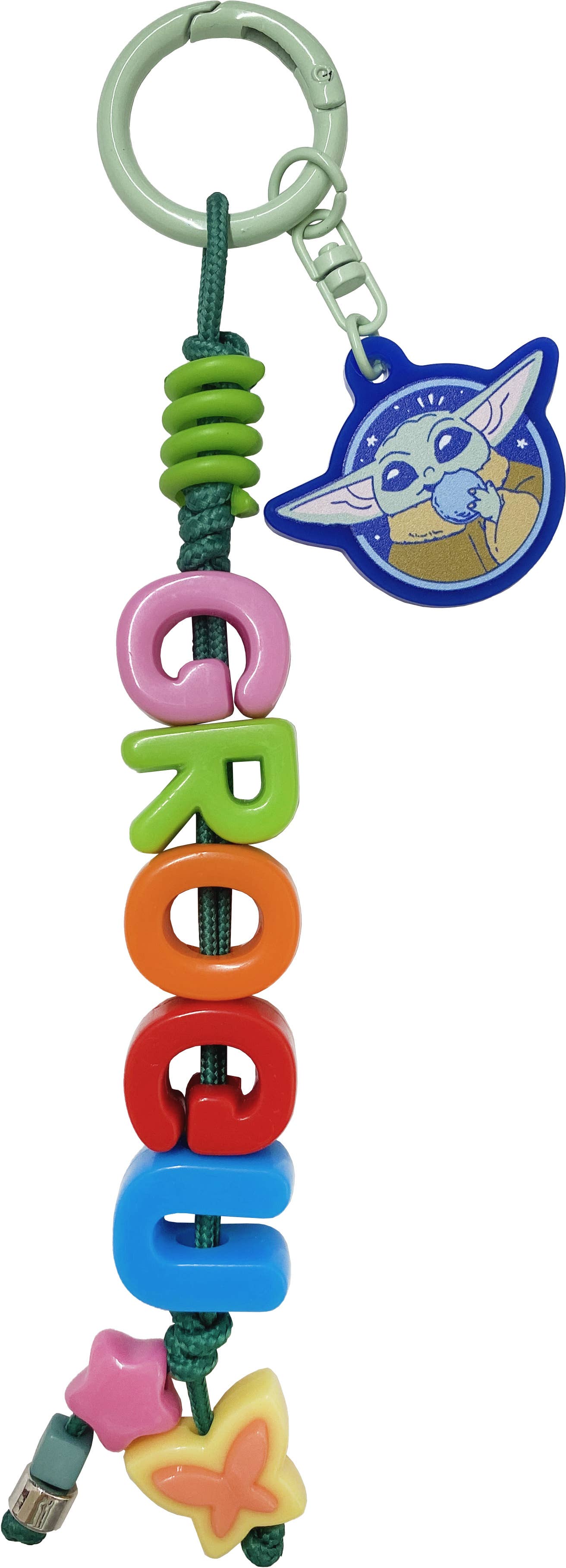 This whimsical, colorful name bead keychain features Grogu from the upcoming film "Star Wars: The Mandalorian & Grogu"! You'll love it -- place your order today!